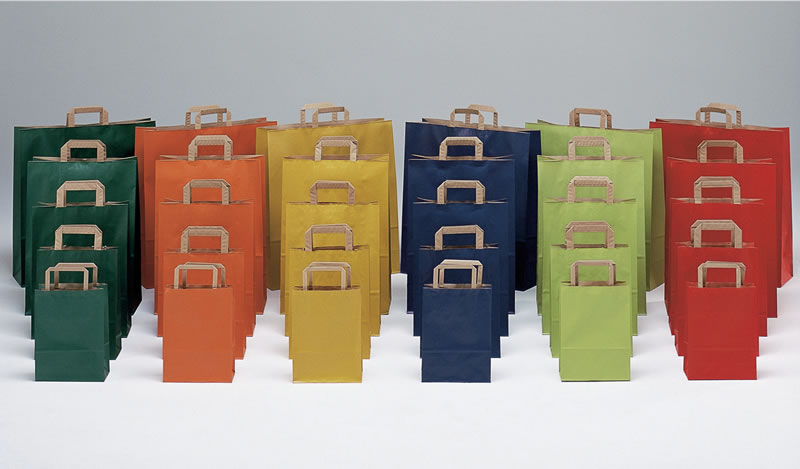 Las bolsas de papel de asas planas son las bolsas más baratas del mercado, no por ello tienen menos resistencia, de hecho tiene algo más de resistencia que las rizadas porque al ser planas se encolan mucho mejor en el interior de la bolsa. El único inconveniente es que hay gente que las encuentra un poco incómodas a la mano por la forma recta de las asas. Son ideales para ferias, para comercios donde el precio medio de los productos que se venden no son muy altos, es la versión más barata para substituir las bolsas de plástico. El pedido mínimo suele ser el mayor de todas las clases de bolsas. Se pueden hacer en producción, es decir se elabora la impresión de la bolsas antes de su confección con lo que es posible rotularla completamente (pedido mínimo a partir de +o-7000 bolsas) o impresión con serigrafía (a partir de +o- 400 unidades) área de impresión mucho menor. Productos en nuestra tienda